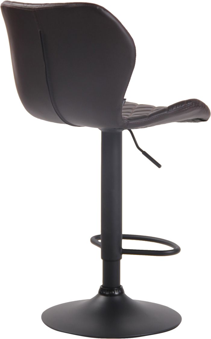 Dieser Barhocker verleiht jedem Raum einen exklusiven Look und besticht nicht nur durch seine hervorragenden Sitzeigenschaften, sondern auch durch sein modernes Design. Der stylisch gesteppte Sitz mit Kunstlederbezug sowie die Fussstütze ermöglichen ein bequemes Sitzen über einen längeren Zeitraum hinaus. Der Thekenhocker ist mittels Gaslift höhenverstellbar sowie um 360° drehbar. Der Trompetenfuss aus Metall ist mit einem Bodenschoner ausgestattet, der Kratzer und Beschädigungen auf dem Boden verhindert.