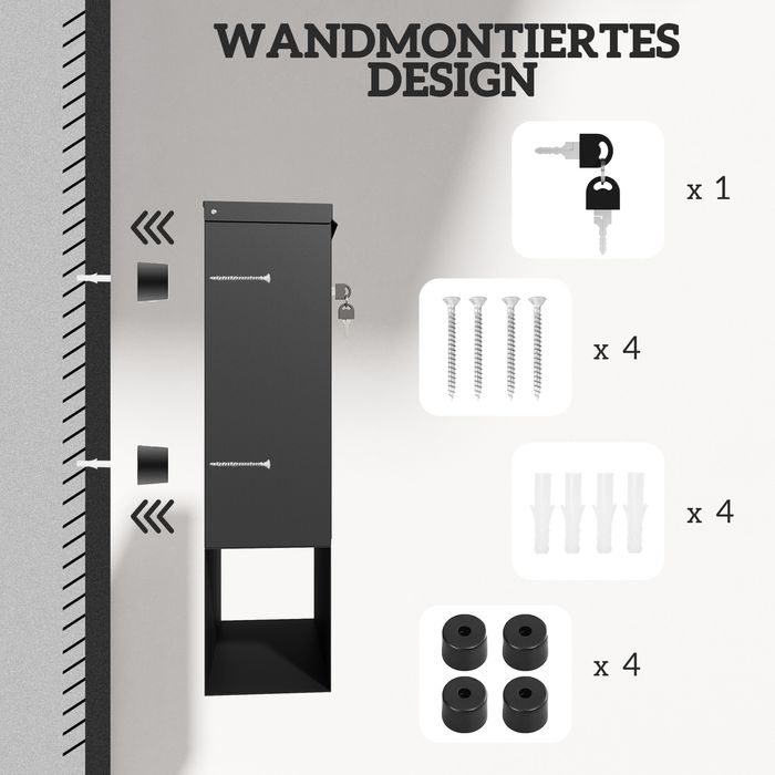 - Sichere Postaufbewahrung: Dank des abschliessbaren Designs mit zwei kräftigen Schlössern bleibt Ihre Post sicher verwahrt und vor unbefugtem Zugriff geschützt.