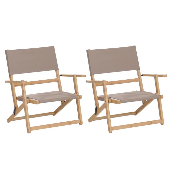 - 2er-Set Campingstühle aus stabilem Bambus mit robustem Polyester-Bezug – langlebig, reissfest und pflegeleicht. Klappbar, sofort einsatzbereit ohne Montage und mit bequemen Armlehnen für extra Komfort.