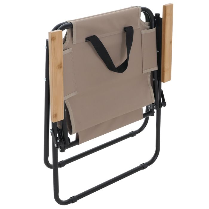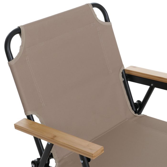 Der robuste Polyester-Bezug aus widerstandsfähigem 600D-Material sorgt für eine hohe Reissfestigkeit und Langlebigkeit, selbst bei intensiver Nutzung im Outdoor-Bereich. Gleichzeitig bietet das Textilgewebe ein angenehmes Sitzgefühl und passt sich optimal an den Körper an. Die integrierten Armlehnen aus natürlichem Bambus verleihen dem Stuhl nicht nur eine edle Optik, sondern erhöhen spürbar den Sitzkomfort – ideal für lange, entspannte Stunden im Freien. Dank der niedrigen Sitzhöhe lädt der Campingstuhl zum gemütlichen Zurücklehnen ein und schafft eine besonders entspannte Sitzposition – perfekt für laue Sommerabende, Festivals oder den nächsten Campingtrip. Das klappbare Design macht den Stuhl besonders flexibel: Er lässt sich im Handumdrehen zusammenklappen, platzsparend verstauen und mühelos transportieren. Mit seinem leichten Gewicht und kompakten Mass ist dieser Freizeitstuhl der ideale Begleiter für unterwegs – ob beim Camping, auf dem Balkon oder im Garten.