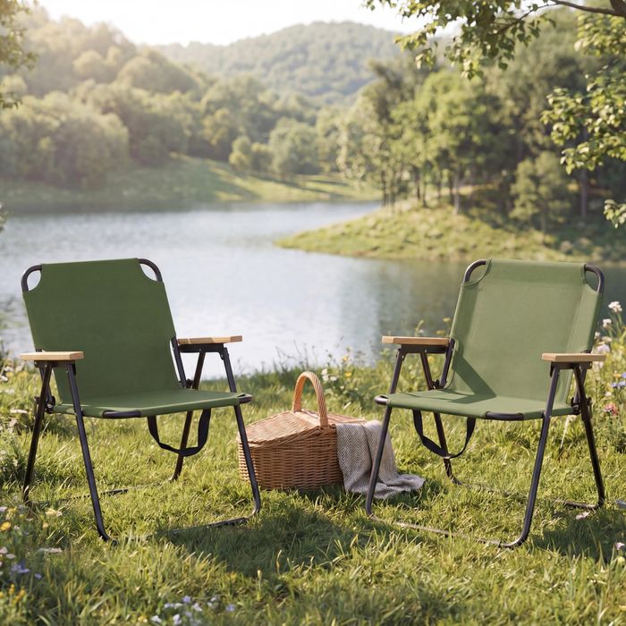 - 2er-Set Campingstühle aus stabilem Eisen mit robustem Polyester-Bezug – langlebig, reissfest und pflegeleicht. Klappbar, sofort einsatzbereit ohne Montage und mit bequemen Armlehnen für extra Komfort.