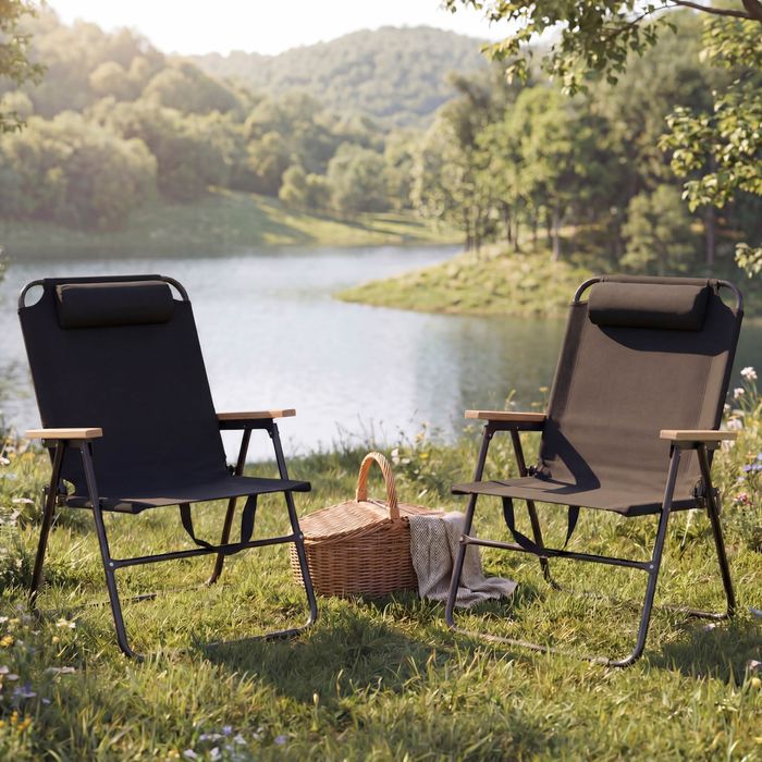 Dank der durchdachten Klappfunktion sind die Campingstühle sofort einsatzbereit – ganz ohne aufwendige Montage. Einfach aufklappen und entspannen. Besonders komfortabel sind die eleganten Armlehnen aus Bambus, die nicht nur optisch ein Highlight setzen, sondern auch für ein angenehmes und natürliches Gefühl beim Sitzen sorgen. Die niedrige Sitzhöhe lädt dazu ein, sich entspannt zurückzulehnen und die Umgebung in vollen Zügen zu geniessen – perfekt für lange Sommerabende oder gemütliche Stunden am Lagerfeuer.