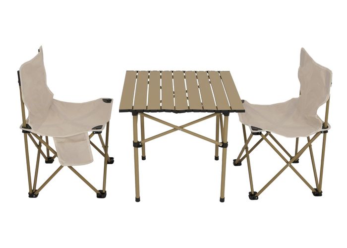 Entdecken Sie das ideale Campingset für entspannte Stunden in der Natur: Zwei bequeme Klappstühle und ein praktischer Tisch bieten alles, was Sie für ein gemütliches Outdoor-Erlebnis brauchen. Dank des durchdachten Designs lässt sich das Set im Handumdrehen aufstellen und genauso schnell wieder kompakt zusammenklappen – perfekt für spontane Ausflüge, Campingtrips, Festivals oder den heimischen Garten. Der stabile Stahlrahmen sorgt bei allen drei Elementen für zuverlässigen Halt und eine lange Lebensdauer, selbst bei regelmässiger Nutzung. Jeder Stuhl trägt bis zu 100 kg, der Tisch ist bis zu 60 kg belastbar – ideal für Mahlzeiten, Getränke oder Campingkocher.