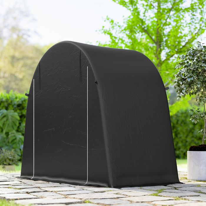 Der Geräteschuppen, tragbar und vielseitig, dient nicht nur dem Fahrradunterstand, sondern auch der Lagerung von Gartengeräten, Brennholz und Outdoor-Ausrüstung. Dank der nahtlosen, wasserdichten Hülle und dem stabilen, verzinkten Metallgestell der Fahrradgarage bleiben Ihre Sachen stets trocken und vor Witterung geschützt. Ideal für die ganzjährige, zuverlässige Sicherung Ihrer Gartenutensilien oder zur Winter-Vorbereitung.