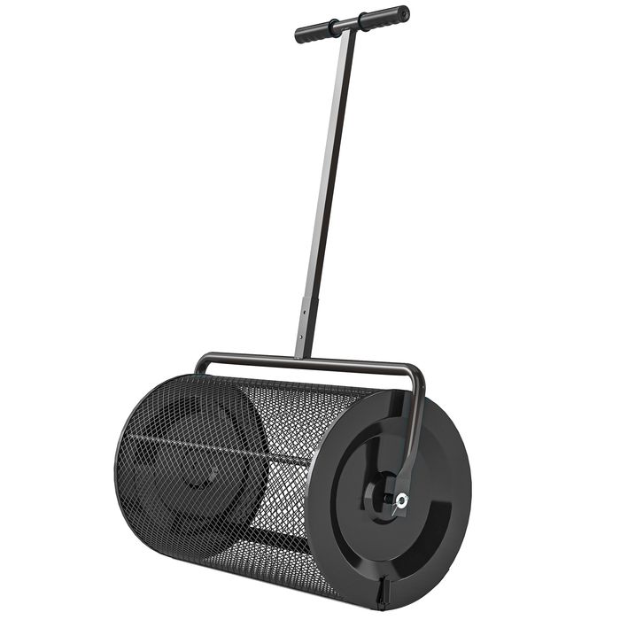 Kompoststreuer 75L, T-Griff, Mesh-Korb Metall, 61x40cm, Schwarz