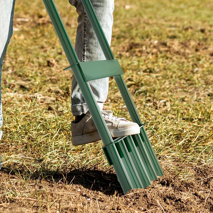 Erleben Sie üppige Rasenflächen mit dem Outsunny manuellen Vertikutierer. Mit fünf hohlen Zinken ausgestattet, fördert dieser Rasenlüfter die Gesundheit und Atmungsfähigkeit Ihres Rasens, indem er kleine Bodenkerne entfernt. Die robuste, pulverbeschichtete Stahlkonstruktion und die 94 cm Länge des Rasenlüfters gewährleisten eine bequeme Nutzung ohne Rückenbelastung. Unverzichtbar für alle Gartenfans!
