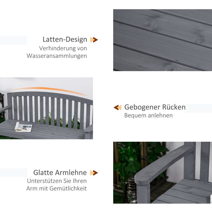 2-Sitzer Gartenbank Holz, wetterfest, Rückenlehnen, bis 240kg, 143x51x85cm, Grau