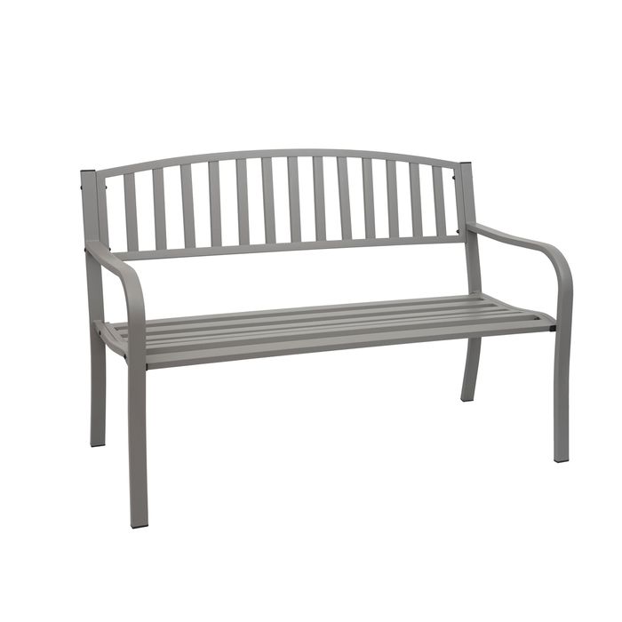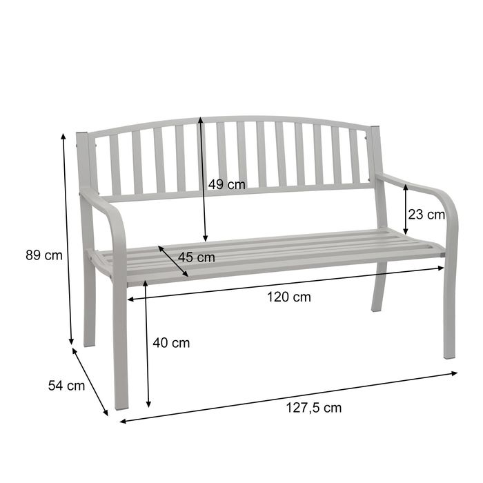 Gartenbank, Bank Parkbank Sitzbank, 2-Sitzer pulverbeschichteter Stahl - grau