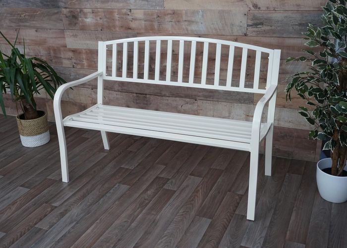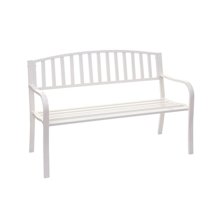 Gartenbank, Bank Parkbank Sitzbank, 2-Sitzer pulverbeschichteter Stahl - weiss