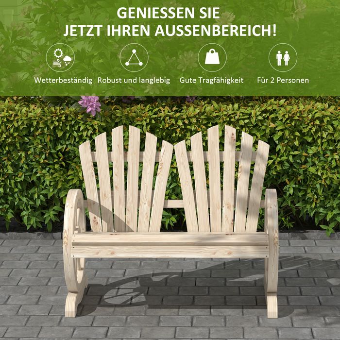 Dieser aus natürlichem Tannenholz gefertigte Liebesstuhl aus Holz hat gut gestaltete, radförmige Armlehnen. Er kann in jedem Entspannungsbereich, wie Garten, Hof, Terrasse, Pools, etc. eingesetzt werden. Die breiten Sitzflächen und das robuste Design bieten Platz für mindestens zwei Personen. Die bequeme Rückenlehne ist perfekt zum Entspannen, Ausruhen, Schlafen und für Unterhaltungen.