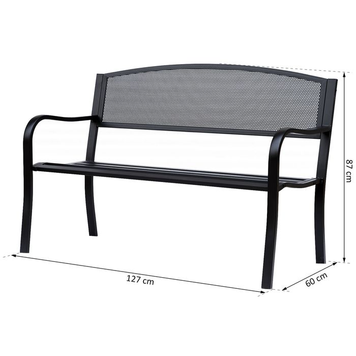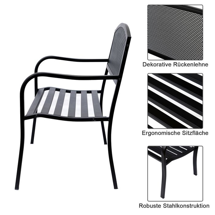 Gartenbank Sitzbank Parkbank 2-Sitzer Garten Stahl Schwarz B127 x T60 x H87cm