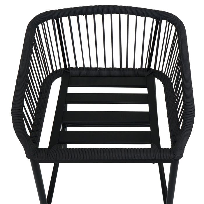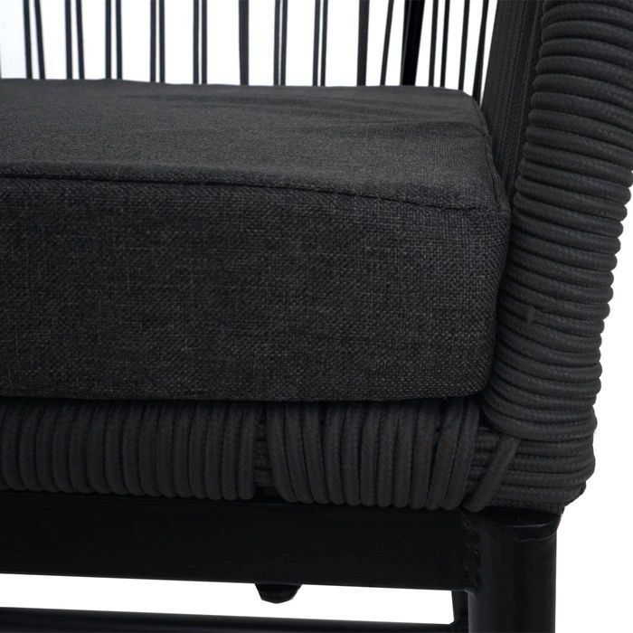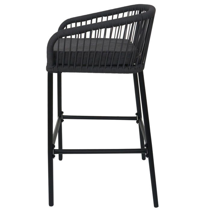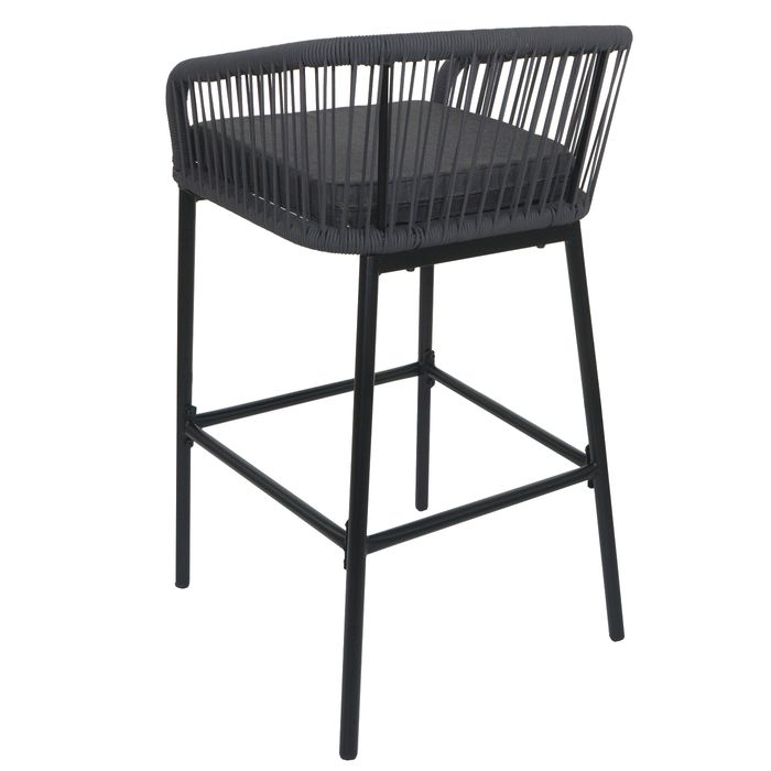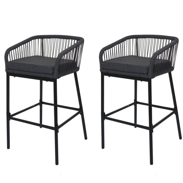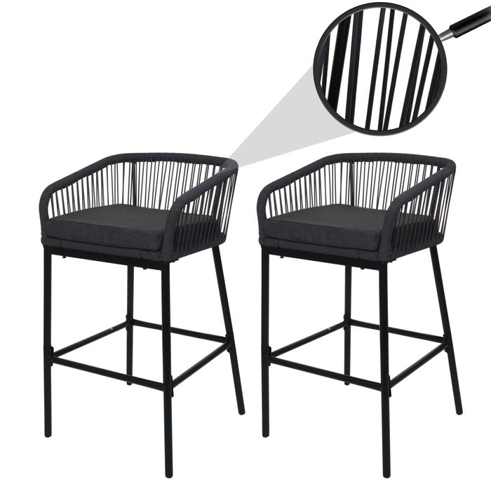 2er-Set Rope-Barhocker O22, Outdoor Sitzpolster Seilgeflecht Metall, anthrazit, Kissen dunkelgrau