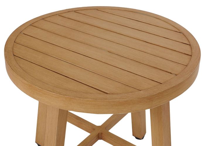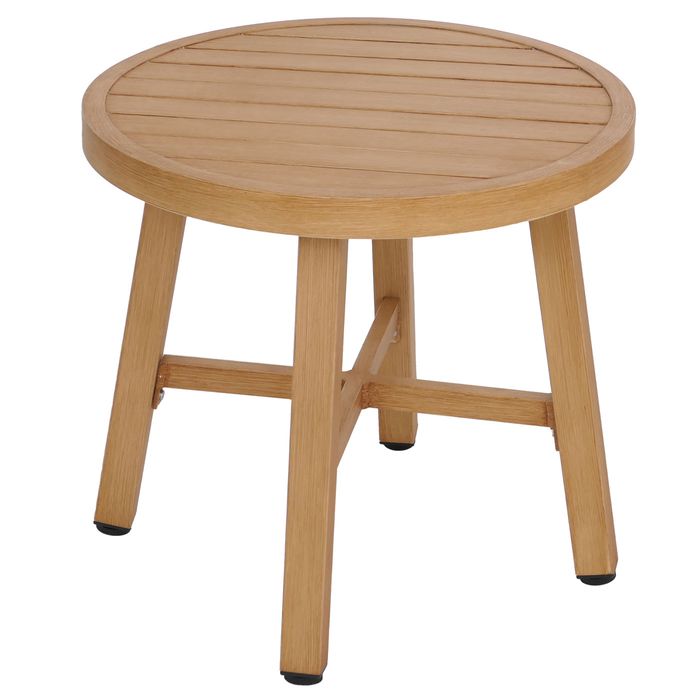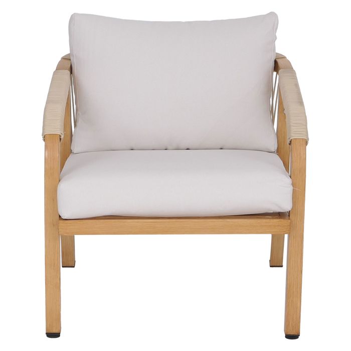 Aluminium Lounge-Set P82, Balkon-Set Stuhl Tisch, Stoff/Textil (220g/m²), Holz-Optik creme