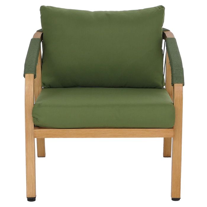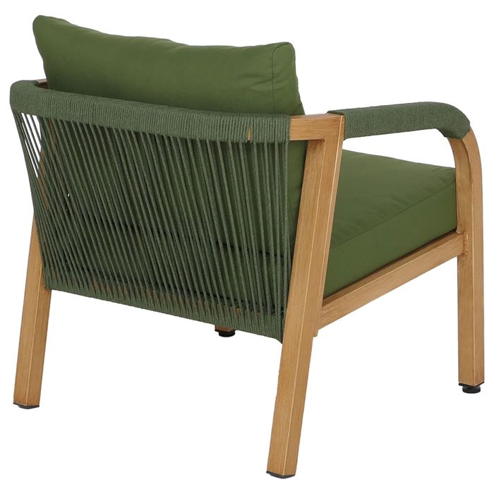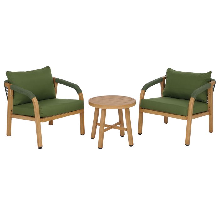 Aluminium Lounge-Set P82, Balkon-Set Stuhl Tisch, Stoff/Textil (220g/m²), Holz-Optik olivgrün