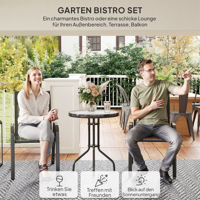 - 3-teiliges Terrassenset: Elegantes Balkonmöbel Set mit zwei Sesseln und rundem Tisch, ideal als Bistro- oder Lounge-Set für kleine Flächen wie Terrasse, Veranda, Deck oder Balkon.