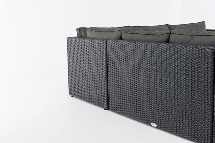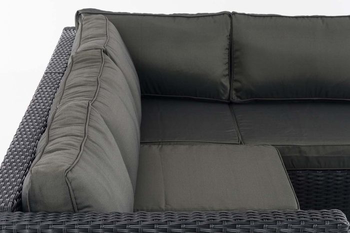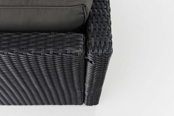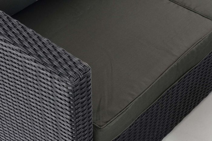 Polyrattan sieht aus wie herkömmliches Rattan, hat aber deutlich mehr Vorteile. Im Gegensatz zu normalem Rattan, ist Polyrattan besonders gut für die Verwendung im Aussenbereich geeignet, da das Material sehr widerstandsfähig ist und nicht zum Fasern neigt. Polyrattanfasern sind wasserfest, pflegeleicht und UV-beständig, sodass sie auch bei häufiger und langjähriger Nutzung unverändert ihre Farbtiefe behalten. Polyrattan Möbel sind um einiges leichter als herkömmliche Gartenmöbel, da das Gestell aus Aluminium besteht, sodass grosse Gartenmöbel auch leichter mal verrückt werden können. Durch das pulverbeschichtete Aluminium sind die Möbel stabil und dauerhaft rostfrei. Die Mehrfachverstrebungen sorgen zusätzlich für eine extreme Stabilität. Die Polster sind mit Bezügen aus 100 % Polyester versehen. Diese sind wasser- sowie schmutzabweisend und durch ihre hohe Strapazierfähigkeit lange haltbar. Dank der verdeckt eingenähten Reissverschlüsse lassen sich die Bezüge bei Bedarf einfach abnehmen und waschen.