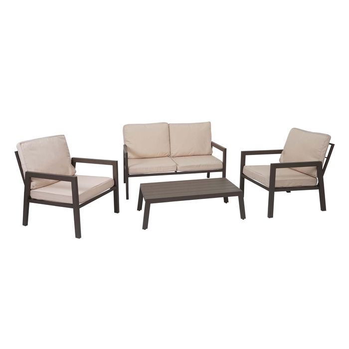 Diese Sitzgarnitur besteht aus drei frei stehenden Sitzteilen mit Rücken- und Armlehnen inkl. komfortablen Polsterungen und einem niedrigen Tisch. Das Set kann ganz nach Ihren Wünschen an jede Gelegenheit und dem entsprechenden Platzangebot angepasst werden. Egal ob Garten, Terrasse oder Balkon - diese zeitlose Gartengarnitur gibt immer und überall eine gute Figur ab und fügt sich nahtlos in jede Umgebung ein. Gut verarbeitet, ist dieses Set der ideale Anlaufpunkt für alle, die ein Plätzchen mit dem gewissen Etwas suchen.
