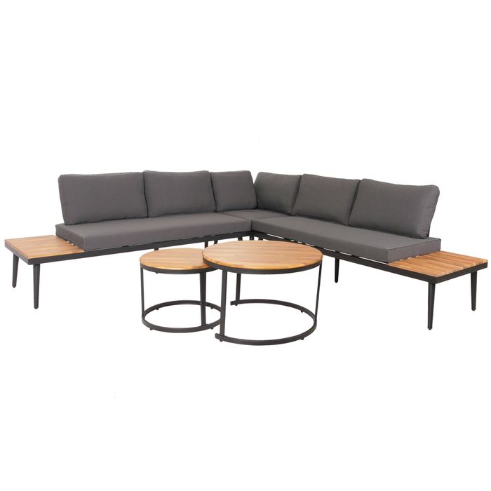 - Diese moderne Gartengarnitur setzt extravagante Akzente auf Ihrem Balkon, Ihrer Terrasse oder in Ihrem Wintergarten. Neben der stabilen Konstruktion verfügt diese Garnitur auch über fünf herrlich weich gepolsterte Sitzplätze.