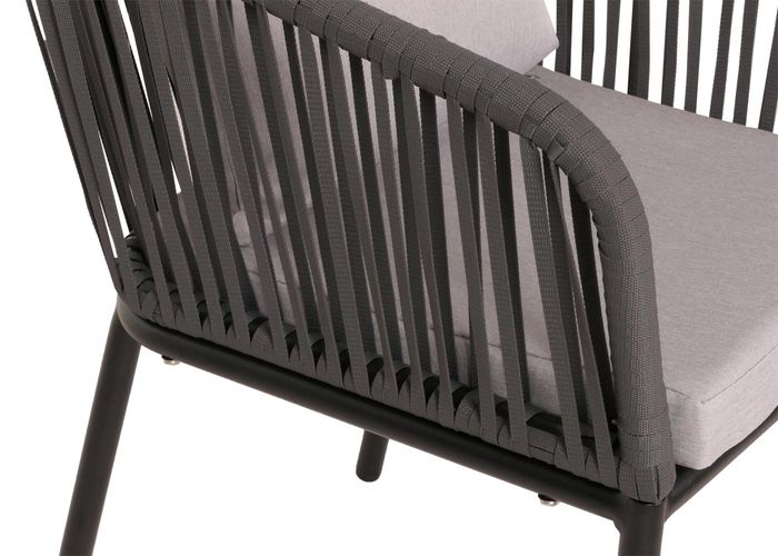 Die Stühle, ausgestattet mit einem elastischen Seilgeflecht, bieten nicht nur visuelle Attraktivität, sondern auch aussergewöhnlichen Sitzkomfort. Das "Rope" Seilgeflecht, zusammen mit den inkludierten Sitzkissen, deren wasserabweisende Bezüge gegen unvorhergesehene Wetterumschwünge schützen, versprechen Bequemlichkeit und Funktionalität in jedem Detail. Der praktische Reissverschluss der Polsterbezüge erleichtert zudem die Reinigung und Pflege, was diese Garnitur besonders pflegeleicht macht. Witterungsbeständigkeit ist bei der N41 Gartengarnitur kein leeres Versprechen: Jedes Element des Sets wurde mit Blick auf Langlebigkeit und Beständigkeit gegenüber verschiedenen Wetterbedingungen entworfen. So können Sie sich darauf verlassen, dass Ihr Gartenmöbel-Set sowohl die sonnigen Tage als auch die unvermeidlichen Regenschauer unbeschadet übersteht.
