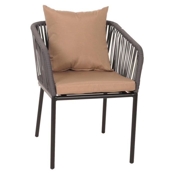 Gartengarnitur HWC-N41, Tisch+4xStuhl, wetterfest Alu 140x80cm, Seilgeflecht Rope – anthrazit Kissen taupe