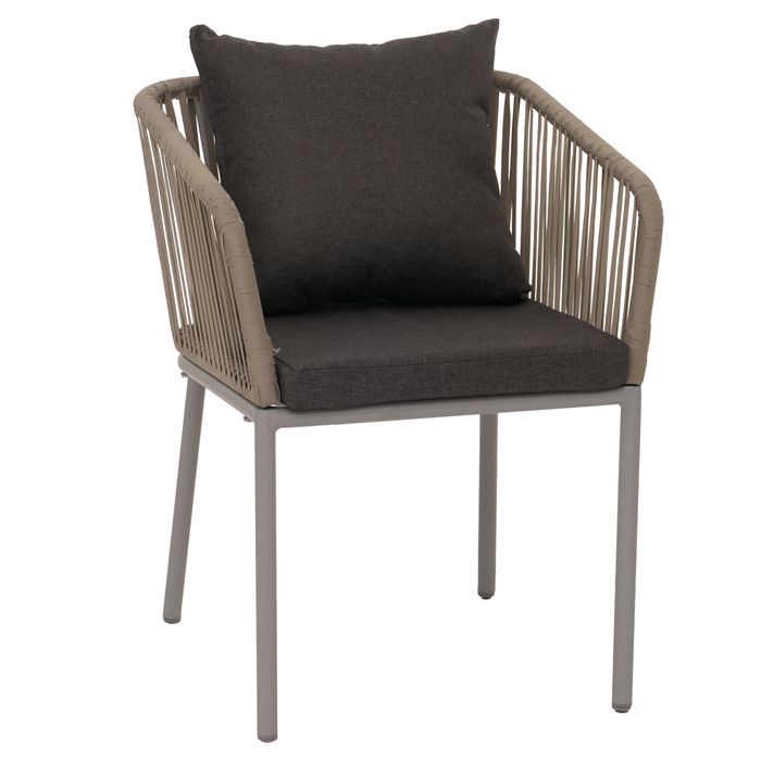 Gartengarnitur HWC-N41, wetterfest Alu 140x80cm, Seilgeflecht Rope – grau, Kissen dunkelgrau
