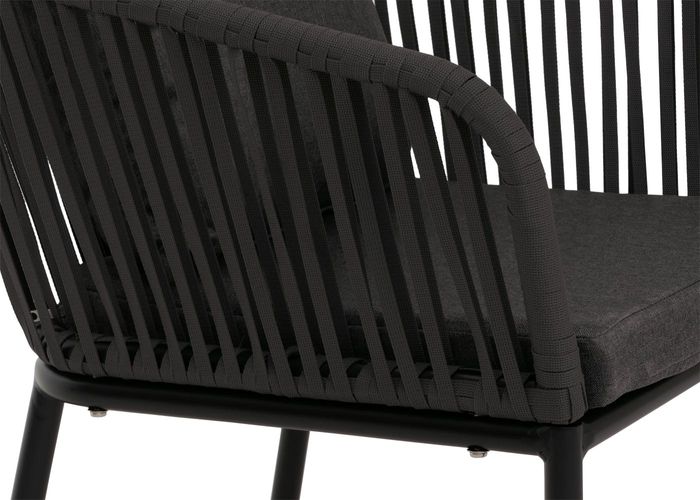 Gartengarnitur HWC-N41, wetterfest Alu 180x80cm, Seilgeflecht Rope – anthrazit, Kissen dunkelgrau