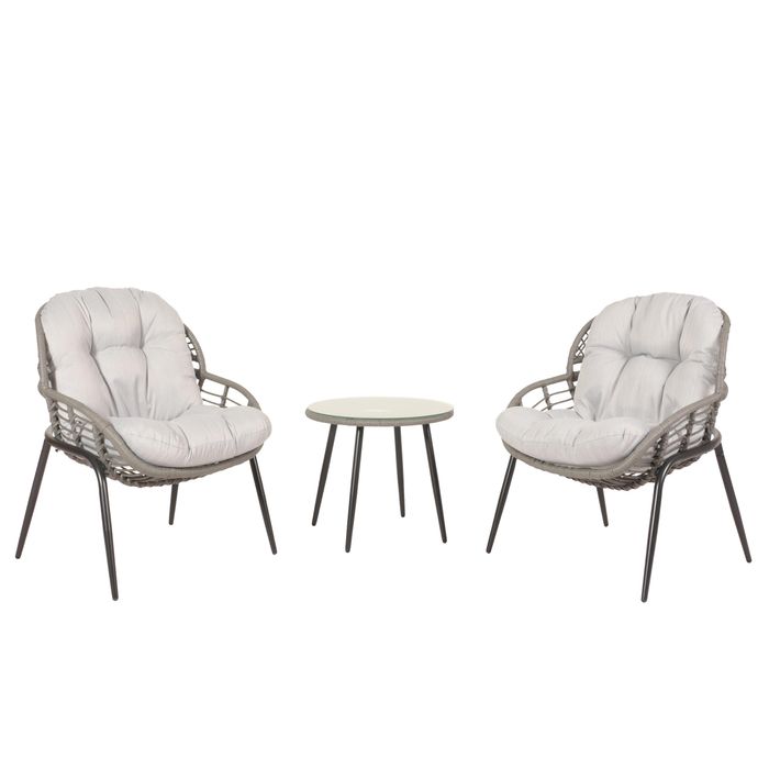 - Lieferumfang: 2x Stuhl, 1x Beistelltisch