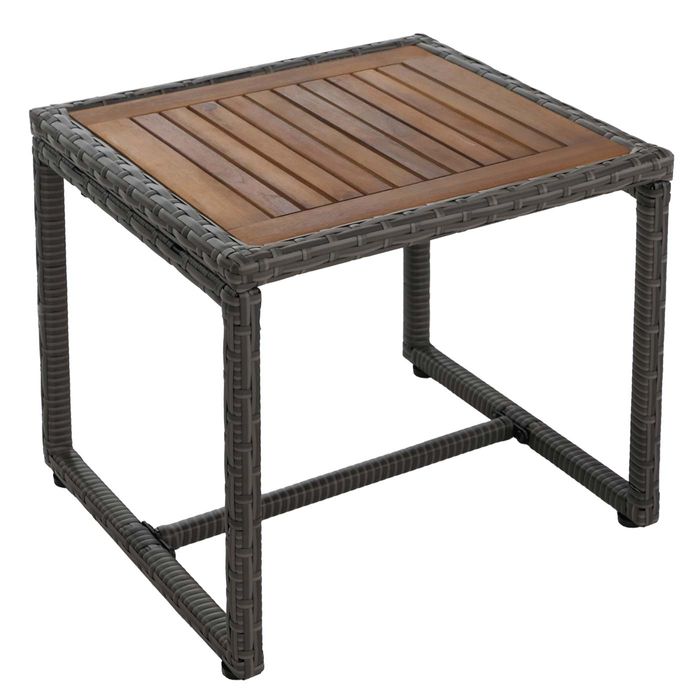 Poly-Rattan Garnitur P74, 2x Stuhl Tisch, Akazie Holz Stoff 180g/m², grau, Polster grau