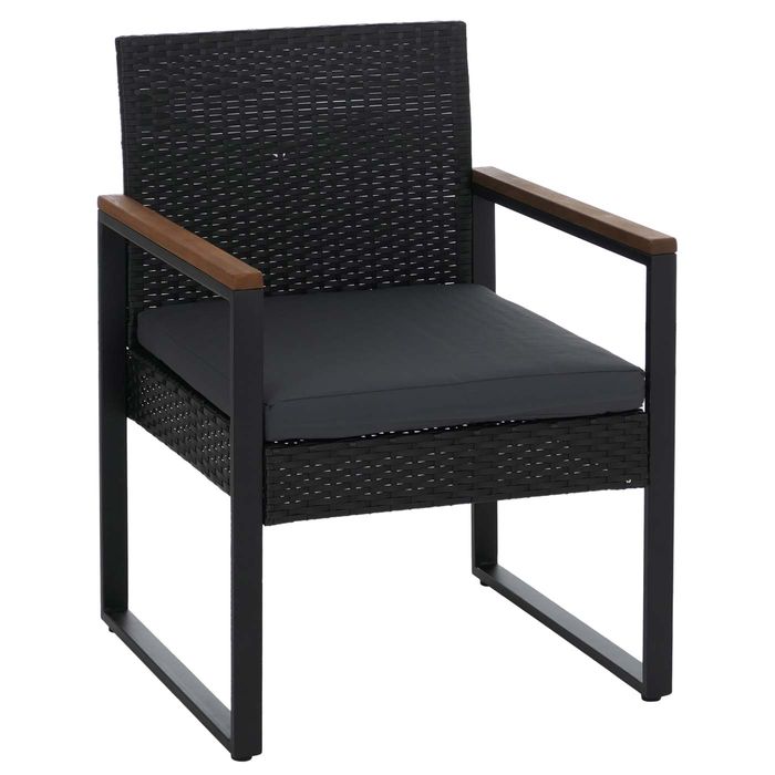 Poly-Rattan Garnitur P74, 2x Stuhl Tisch, Akazie Holz Stoff 180g/m², schwarz, Polster grau