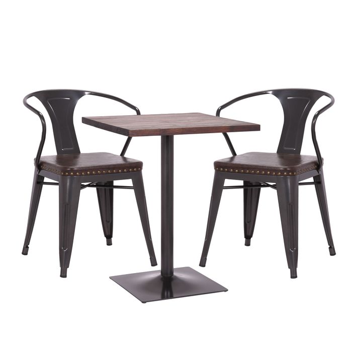 Set Bistrotisch 2x Esszimmerstuhl HWC-H10d, Stuhl Tisch Küchenstuhl Gastronomie - schwarz-braun, Tisch dunkelbraun