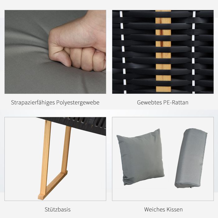 - Material: Holz, PE-Rattan, Polyester, Schaumstoff