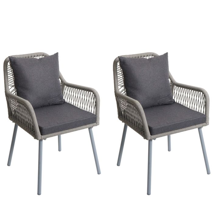 2er-Set Gartenstuhl HWC-O12, Outdoor Sitz-/Rückenpolster Aluminium Seilgeflecht Rope - hellgrau, Bezug dunkelgrau