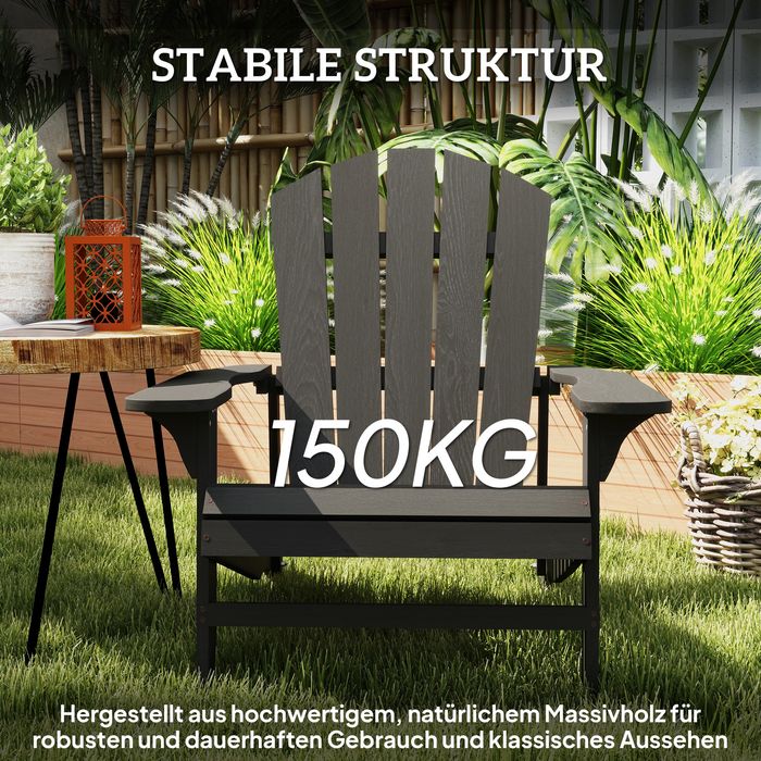 - Informationen zum Adirondack Stuhl: Gesamtmasse: 78Bx89Tx88H cm. Maximale Belastbarkeit: 150 kg. Montage erforderlich.