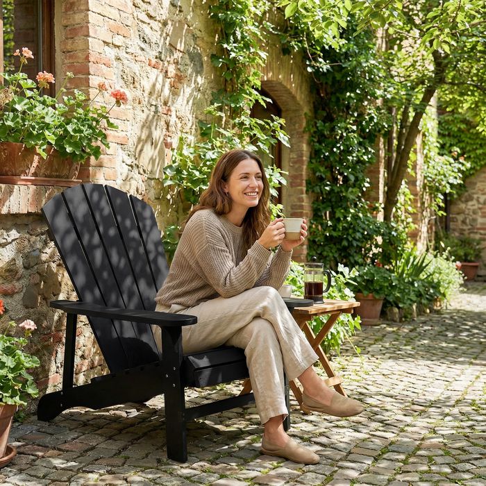 - Adirondack-Komfort: Der Adirondack Stuhl verfügt über eine komfortabel geneigte, hohe Rückenlehne und zwei breite Armlehnen. Sein breites Design bietet viel Platz und passt sich den meisten Körpertypen an.