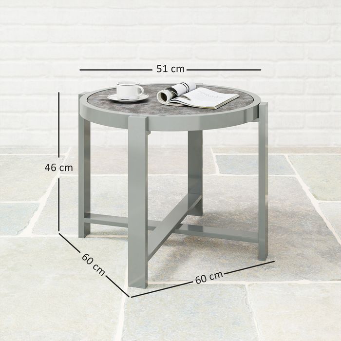 Beistelltisch Gartentisch Rund wetterfest Aluminium Balkontisch mit Marmoroptik Grau