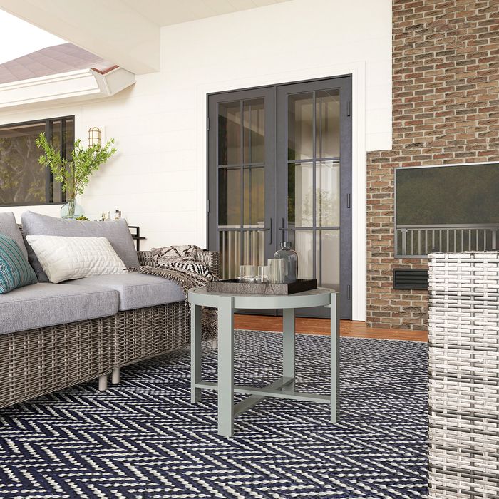 - Hartglasplatte: Ausgestattet mit einer 5 mm starken Hartglasplatte, bietet dieser Outdoor-Beistelltisch eine robuste und sichere Oberfläche, die sich zudem leicht reinigen lässt, ideal für den Einsatz im Garten.