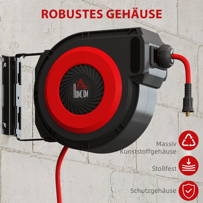 Schlauchtrommel, Auto-Einzug, 16,5 m langer Schlauch, Wandmontage, Rot+Schwarz