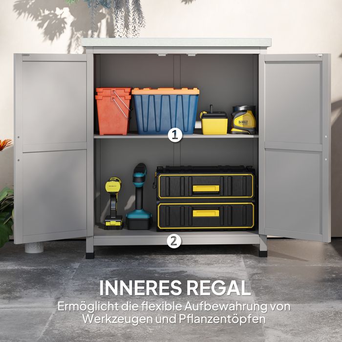 - Dient sowohl als Gartenschrank als auch als Werkbank, für vielseitige Nutzung