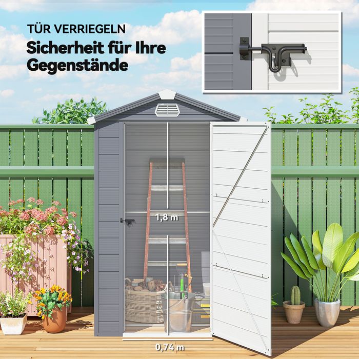 - Die Tür des Geräteschuppens verfügt über ein Verriegelungssystem
