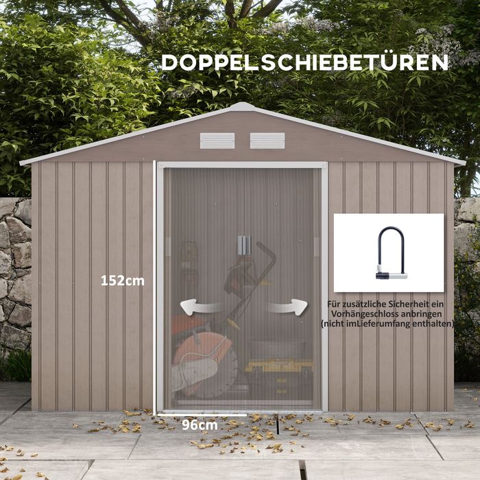 Gerätehaus 4,9 m², Schiebetür, 277x195x192 cm, verzinkter Stahl, hellbraun