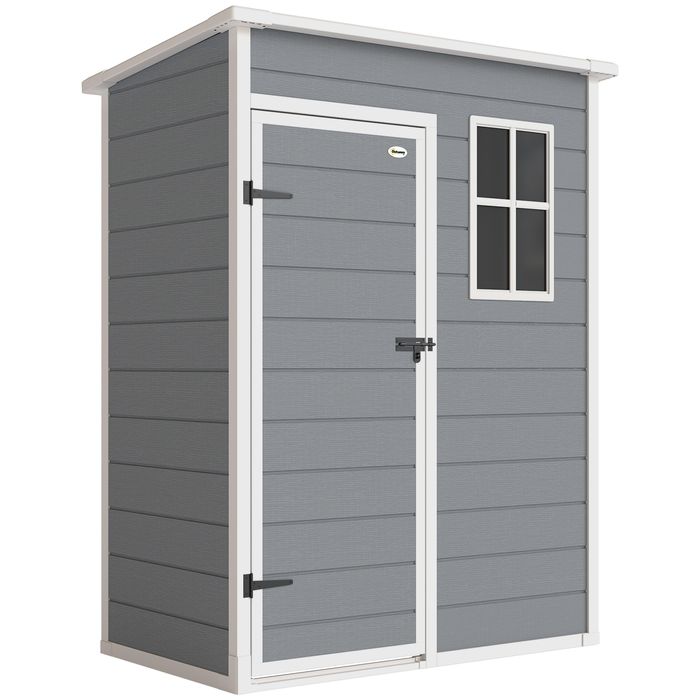 Gerätehaus Kunststoff 1,14m² 151 x 92 x 193cm Geräteschuppen mit Pultdach Boden Fenster Grau