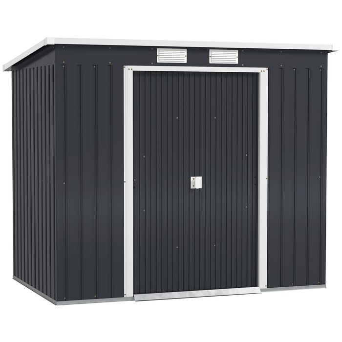 Geräteschuppen, Lüftungsfenstern, Schiebetüren, verzinkt, 213x130x172cm, Dunkelgrau