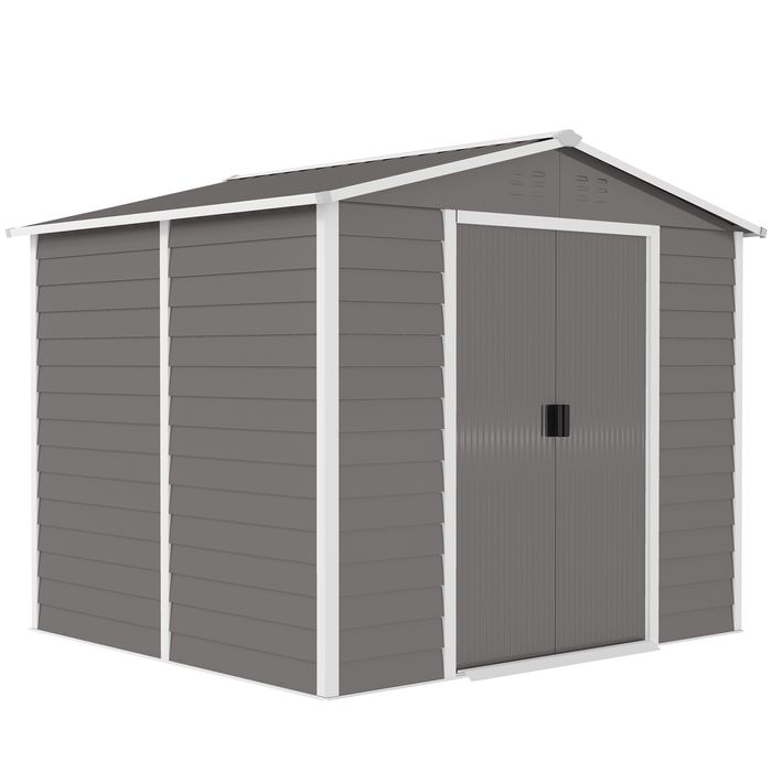 Geräteschuppen, Metall, wetterfest & rostfrei, abschliessbar, 2,40x2,06x1,98 m, Hellgrau