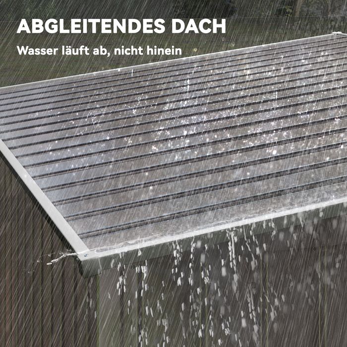 - ✔ Verzinkte Stahlkonstruktion des Geräteschuppens ist robust und für den Ausseneinsatz geeignet