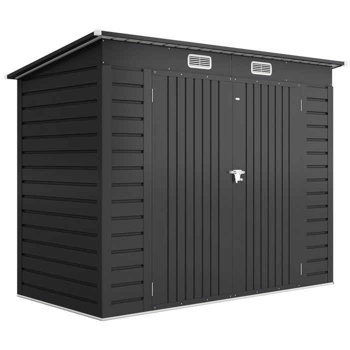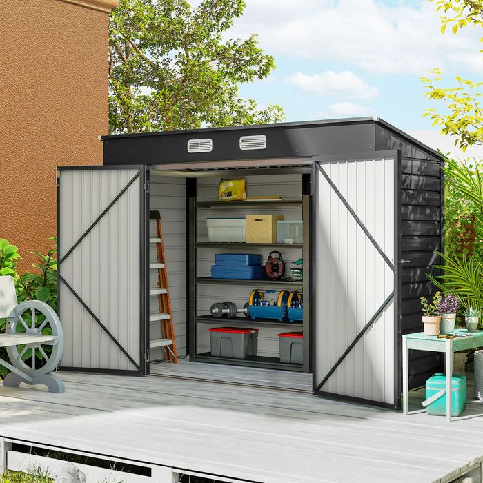 - Doppeltüren des Geräteschuppens für bequemen Zugang und ein Riegel für zusätzliche Sicherheit