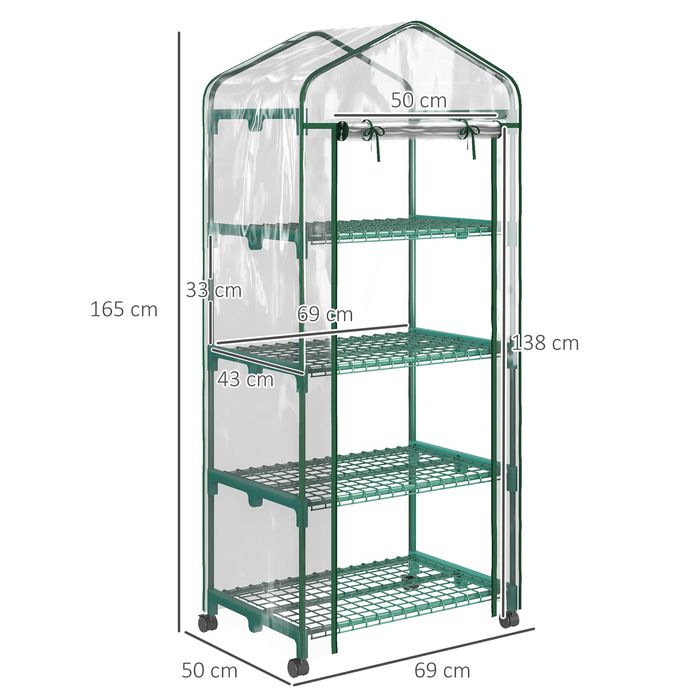Folien-Gewächshaus, Mini-Gewächshaus, 4 Regalfächer, 69 x 50 x 165 cm, Transparent
