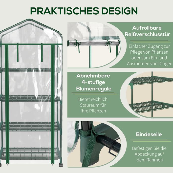 - Kompaktes Pflanzenhaus: Das Mini-Gewächshaus ist ideal für die Aufzucht von Jungpflanzen. Es ist platzsparend konstruiert und passt in nahezu jeden Garten