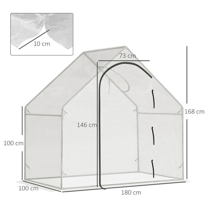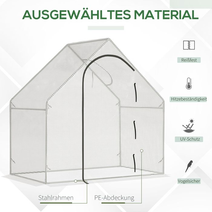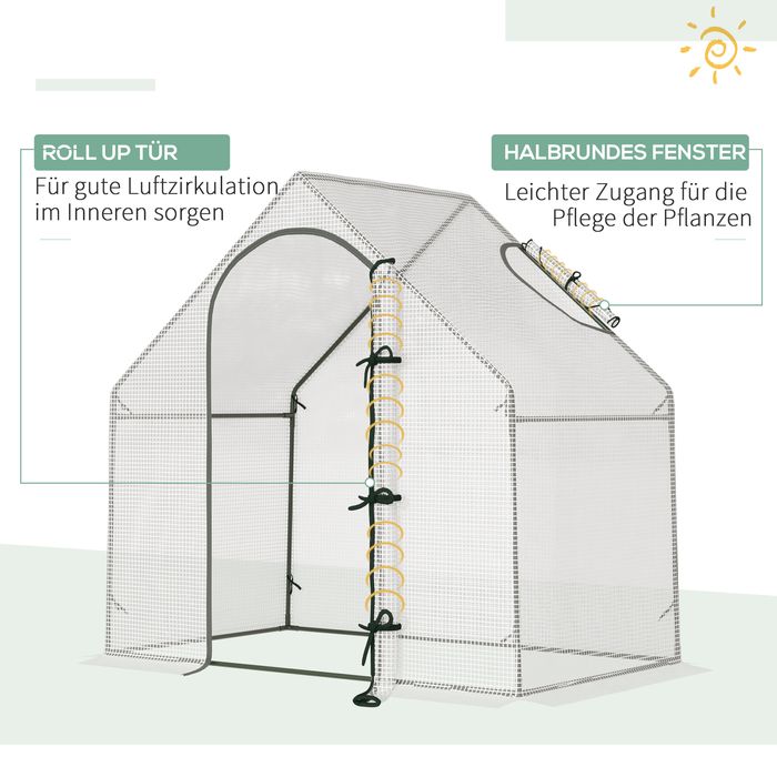 Foliengewächshaus, 180x100x168 cm, mit Rolltür, PE-Gitterfolie, Winterfest, Weiss