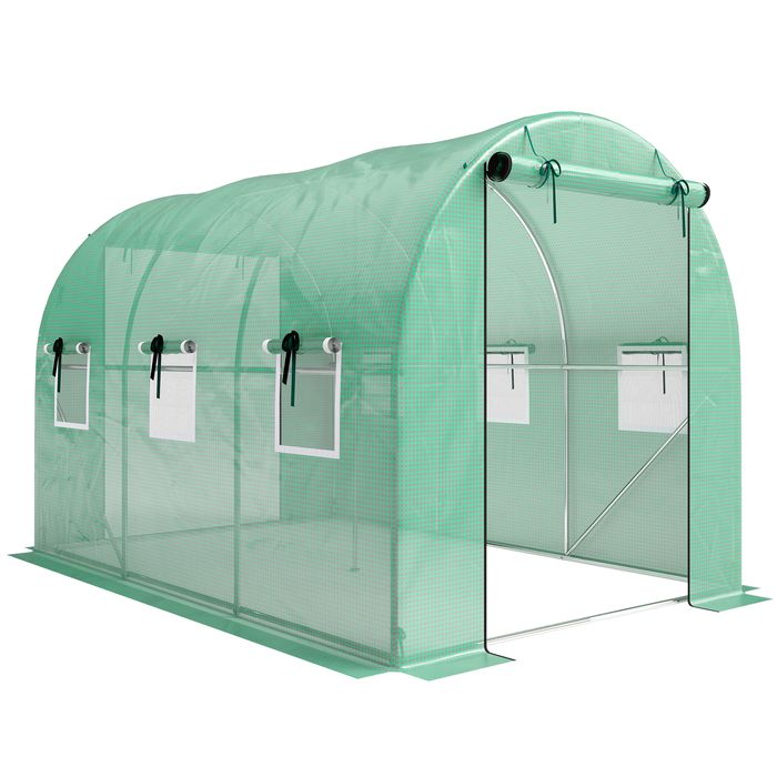 Genervt von wechselhaftem Wetter und lästigen Eindringlingen im Garten? Das Gewächshaus schafft Abhilfe. Der verzinkte Stahlrahmen mit diagonalen Streben und Stützstangen sorgt für extra Stabilität, während die PE-Abdeckung ein ideales Mikroklima schafft. Belüftete Rolltüren und Fenster garantieren optimale Bedingungen für Ihre Pflanzen. Ideal für Hobbygärtner, die ein geräumiges Foliengewächshaus für ihr Garten-Polytunnel-Paradies suchen!
