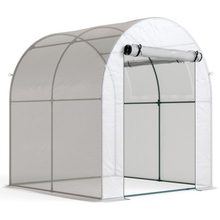 Mit dem tragbaren Gewächshaus verlängern Sie die Anbausaison. Der robuste Stahlrahmen des Folientunnels, komplett mit Abspannseilen und Heringen, bietet festen Halt. Auf 6 x 6 Fuss bietet dieser Folientunnel ausreichend Platz für Ihre Pflanzen und ist frei nach Ihren Vorstellungen gestaltbar. Es verfügt über eine aufrollbare Tür und ein seitliches Rollfenster für leichten Zugang und optimale Belüftung.